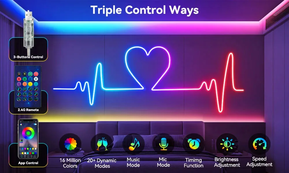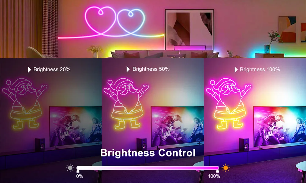 The neon RGB LED strip with IC is made of genuine silicone material, making it more flexible, durable, and crack resistant.