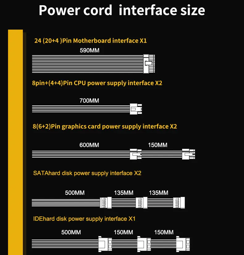 PCIE 5.0 1200W PC Power Supply Full Modular PSU for Power Source 1200W WATT Power Supply ATX PC PSU GPU Gaming Graphics